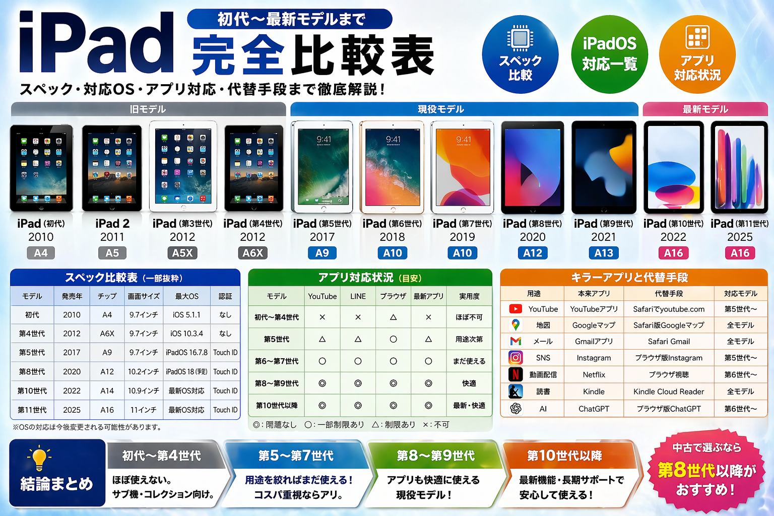無印iPadはどこまで使える?主要アプリ対応を世代別に完全解説【2026年版】